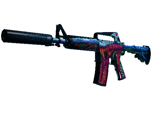 With a smaller magazine than its unmuffled counterpart, the silenced M4A1 provides quieter shots with less recoil and better accuracy. It has been custom painted with a beastly creature in psychedelic colors.