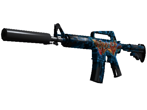 With a smaller magazine than its unmuffled counterpart, the silenced M4A1 provides quieter shots with less recoil and better accuracy. It has been custom painted with wildstyle graffiti.